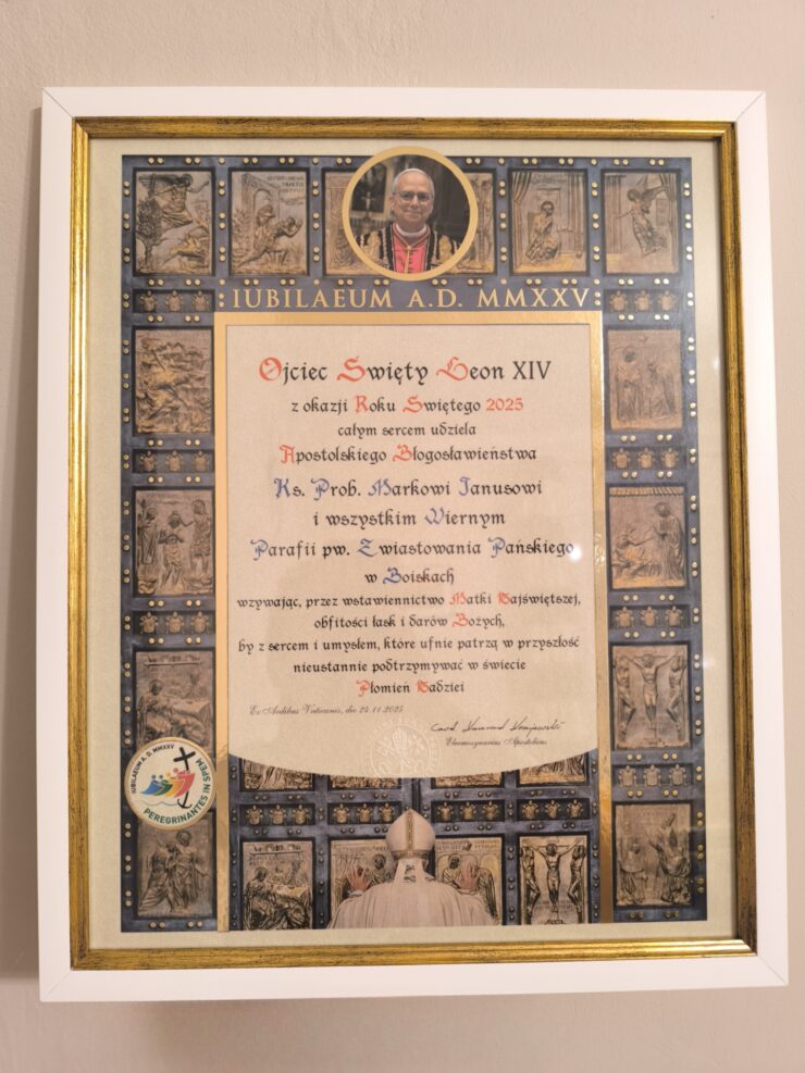 Z okazji Roku Jubileuszowego 2025 nasza parafia pw. Zwiastowania Pańskiego w Boiskach została obdarzona szczególnym darem – jubileuszowym błogosławieństwem apostolskim